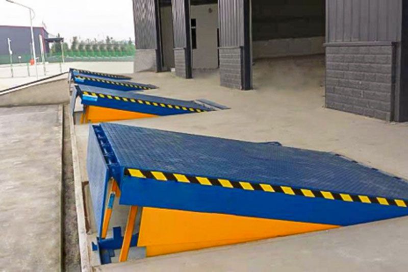Montado en el muelle de carga de forma estacionaria, con altura ajustable para adaptarse a diferentes remolques y camiones para carga/descarga.